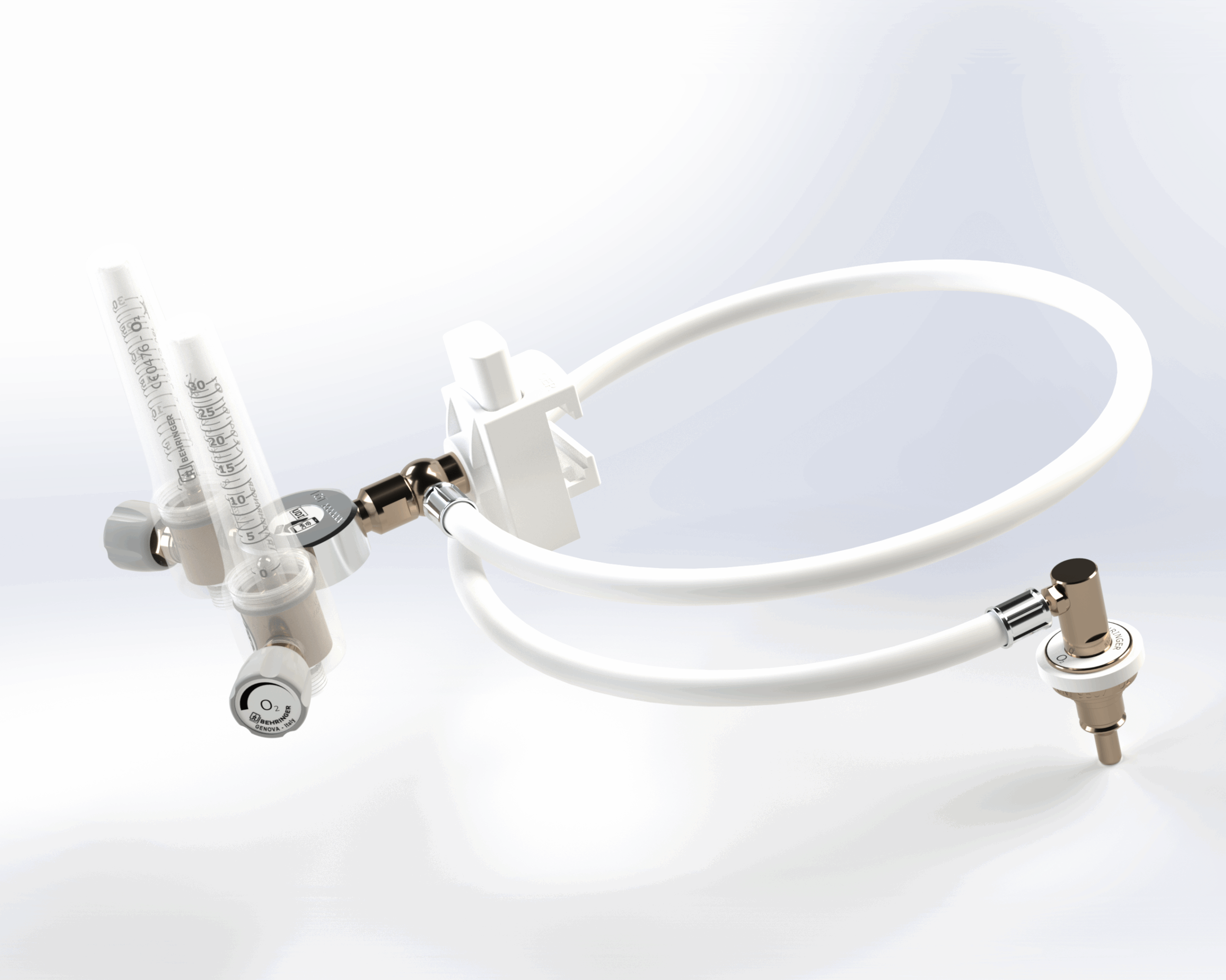 Débitmètre double à section variable pour haut débit composé d’un débitmètre 0-15 l/min + un débitmètre 0-30 l/min ou de deux débitmètres 0-30 l/min ; peut être connecté au secteur au moyen de AFNOR NF S 90-116, DIN 13260-1, UNI 9507, BS 5682, filetage G 1/4 « M RH; complet avec pince ABS pour barre d’instruments; le dispositif permet, à travers le réglage par vanne à pointeau, un débit de 0 à 15 l/min pour le premier et de 0 à 30 l/min pour le deuxième débitmètre ou de 0 à 30 l/min pour les deux, pour un total de 45 l/min soit 60 l/min si utilisé pour un seul patient, à une pression de 4,5 bar ; débitmètre sortie G 1/4 » M RH ou M 12 x 1,25 M RH.