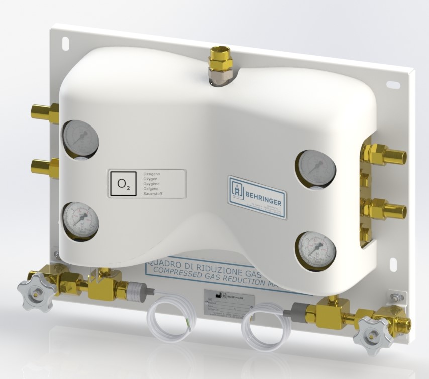 Tableau de distribution 1er étage pour oxygène à haut débit avec échange automatique disponible avec réarmement manuel et automatique; calibré à 9 bar en sortie, il atteint un débit maximum de 150 mc/h en oxygène dans la version à réarmement manuel, 135 mc/h dans la version entièrement automatique; disponible avec pressostat; composé de deux lignes de réduction à double tête, il garantit la continuité de l’alimentation avec une stabilité à haute pression; très compact, il est complété par une plaque en acier thermolaqué et un couvercle en polycarbonate blanc léger et pratique à installer.