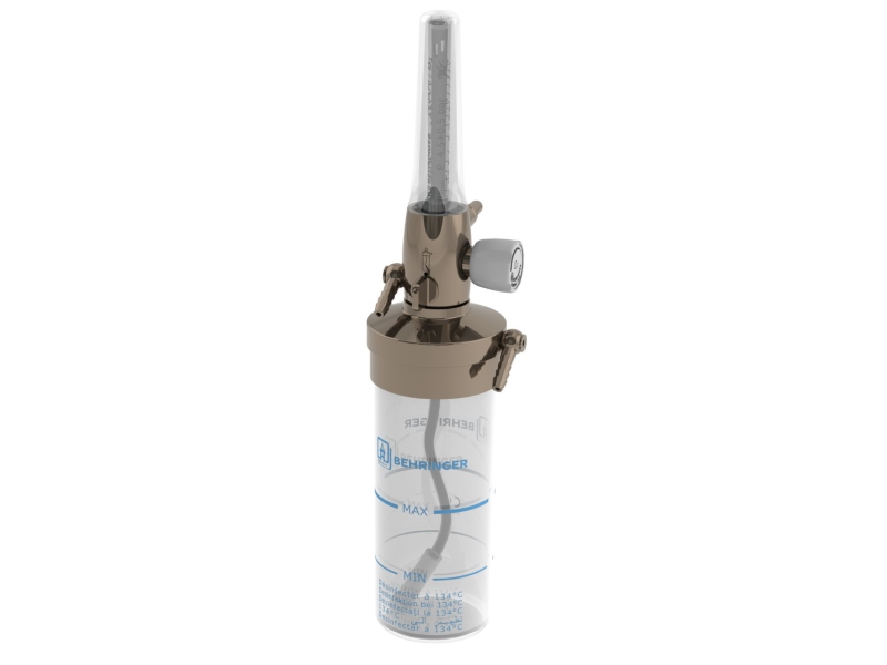 Débitmètre à section variable Elite avec inverseur intégré, complet avec humidificateur, pour le dosage d’oxygène; échelle de 0 à 15 l / min; équipé d’un inverseur pour sélectionner le débit d’oxygène souhaité : sécher à partir de la buse du tuyau ou à travers l’humidificateur intégré ; il peut être raccordé au réseau de distribution de gaz médicaux au moyen de raccords adaptés conformes aux réglementations AFNOR NF S 90-116, DIN 13260-1, UNI 9507, BS 5682, SS 8752430 et G 1/4 « M ; l’appareil permet, grâce au réglage de la vanne à pointeau, un débit de 0 à 15 l/min à une pression de 4,5 bar.