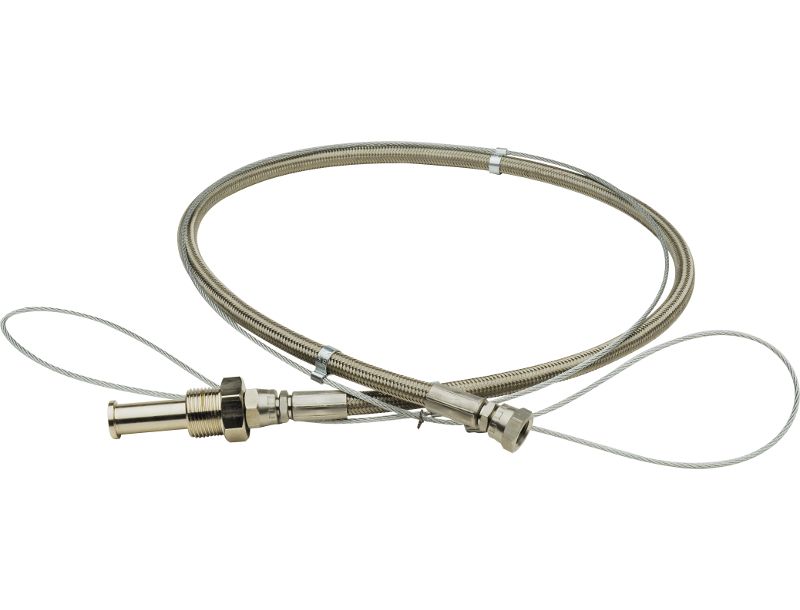 Le raccord flexible haute pression consiste en un tuyau métallique à spirales parallèles en acier inoxydable AISI 316 muni d’une double tresse de renfort en acier inoxydable AISI 304 et d’une protection contre les courbures. Il est utilisé pour raccorder les réservoirs aux distributeurs. Le raccord d’entrée est propre au gaz utilisé tandis que le raccord de sortie D F G1/4 po intègre un écrou d’étanchéité conique.