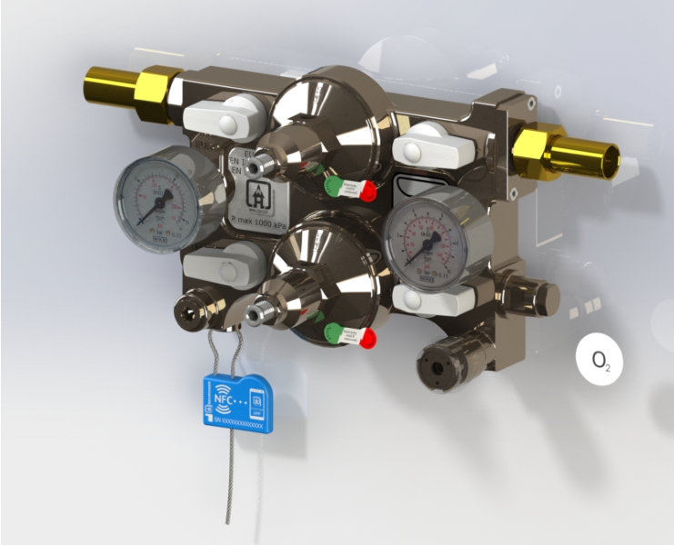 Réducteur de deuxième étage en by-pass modèle EURO/A pour réduire la pression de ligne à celle d’utilisation; le bloc réducteur est complet avec deux vannes de maintenance pour chaque réducteur, une prise de secours et un bloc de déconnexion physique ; prédisposition pour le capteur de proximité qui indique l’état d’ouverture ou de fermeture de la vanne, prise de secours ; cette nouvelle version a la prédisposition pour le pressostat ou le transducteur, en accessoire, au choix du client ; les raccords d’entrée et de sortie sont avec une poche à souder pour un tuyau Ø 16 mm, de plus, chaque siège de chaque accessoire est équipé d’un clapet anti-retour pour le remplacement du composant ; cette unité de réduction compacte garantit des économies considérables de temps, d’espace et de coûts.